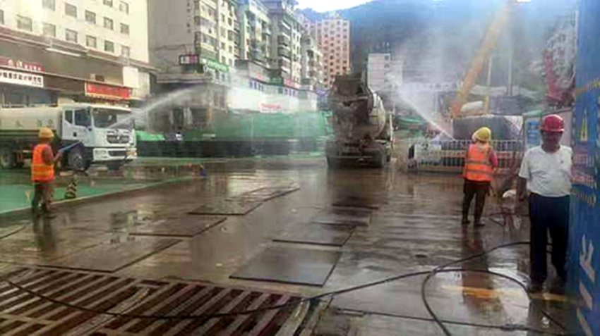 為確保大氣污染防治工作落到實處,增強項目參建人員大氣污染治理防范意識,保證項目建設(shè)順利進行,四公司主要負責(zé)人與蘭州市環(huán)保局、城市執(zhí)法局、質(zhì)監(jiān)站等單位溝通協(xié)調(diào),結(jié)合項目地處鬧市區(qū)實際,制定大氣污染防治措施,并組織項目部全體人員召開大氣污染整治專題會議,對大氣污染防治工作的相關(guān)要求進行部署和落實。一是全面落實公司各項決策部署和子(分)公司《關(guān)于進一步加強施工大氣污染管理工作的通知》要求,提高思想認識,轉(zhuǎn)變工作作風(fēng),落實工作職責(zé),切實抓緊抓實抓好各項措施落實落細,以實際舉措防治大氣污染,確??諝赓|(zhì)量持續(xù)改善。二是加強宣傳引導(dǎo),發(fā)揮黨建工作引領(lǐng)作用,提高政治站位,緊盯目標(biāo)任務(wù),突出重點工作,堅持目標(biāo)導(dǎo)向,劃分責(zé)任區(qū),責(zé)任到人,強化考核問效,為安全文明施工生產(chǎn)提供保障。三是狠抓揚塵治理。各參建員工要牢固樹立大局意識,責(zé)任意識、擔(dān)當(dāng)意識,嚴(yán)格落實“六個百分百”要求,齊抓共管,加強施工現(xiàn)場、道路揚塵管控,督促各施工作業(yè)隊文明施工,嚴(yán)格落實各項防塵抑塵降塵措施,促進項目建設(shè)順利推進。四是加大揚塵污染治理物資設(shè)備的投入。項目部在施工周邊居民樓上安裝噴淋系統(tǒng)噴霧降塵,施工現(xiàn)場發(fā)泡機噴水抑制塵土飛揚,有效減少揚塵污染。施工場區(qū)道路、加工區(qū)地面進行硬化處理,裸露場地進行全覆蓋,鉆孔泥漿自然脫水固化后及時使用封閉式運輸車輛外運。車輛出入口安裝車輛自動沖洗裝置,專人負責(zé),檢查車輛外部、底盤、輪胎處不得沾有污物和泥土,嚴(yán)禁車輛帶泥上路。五是加大巡查和預(yù)防力度。項目部安排專人加強對揚塵污染源的巡查和檢測,不定時進行場地清潔、灑水,及時處理揚塵污染問題。