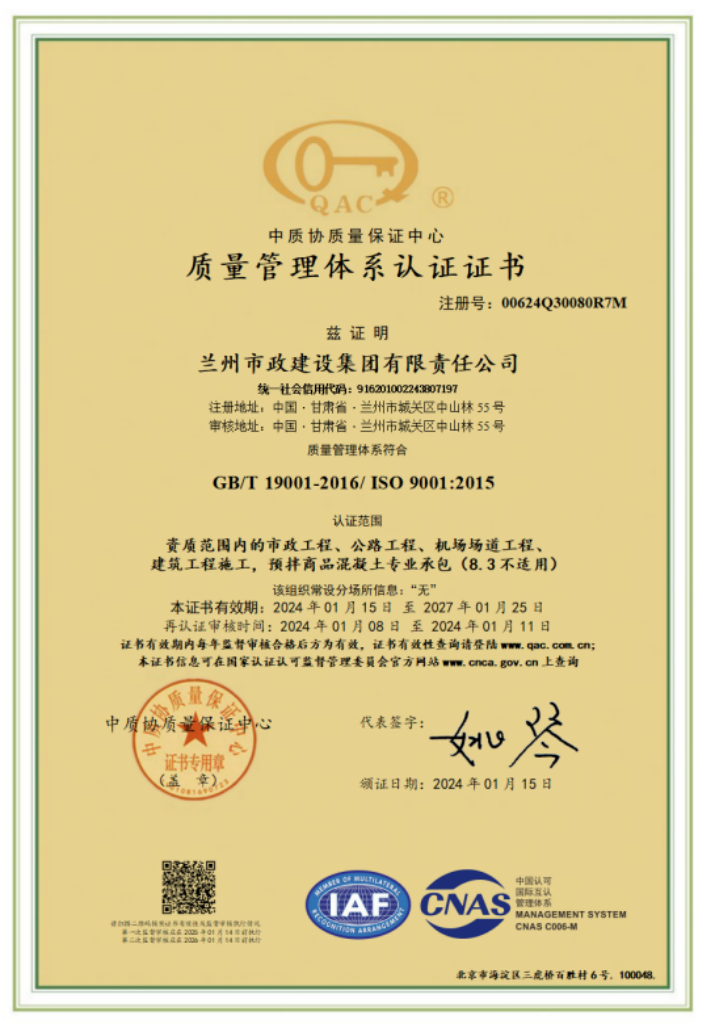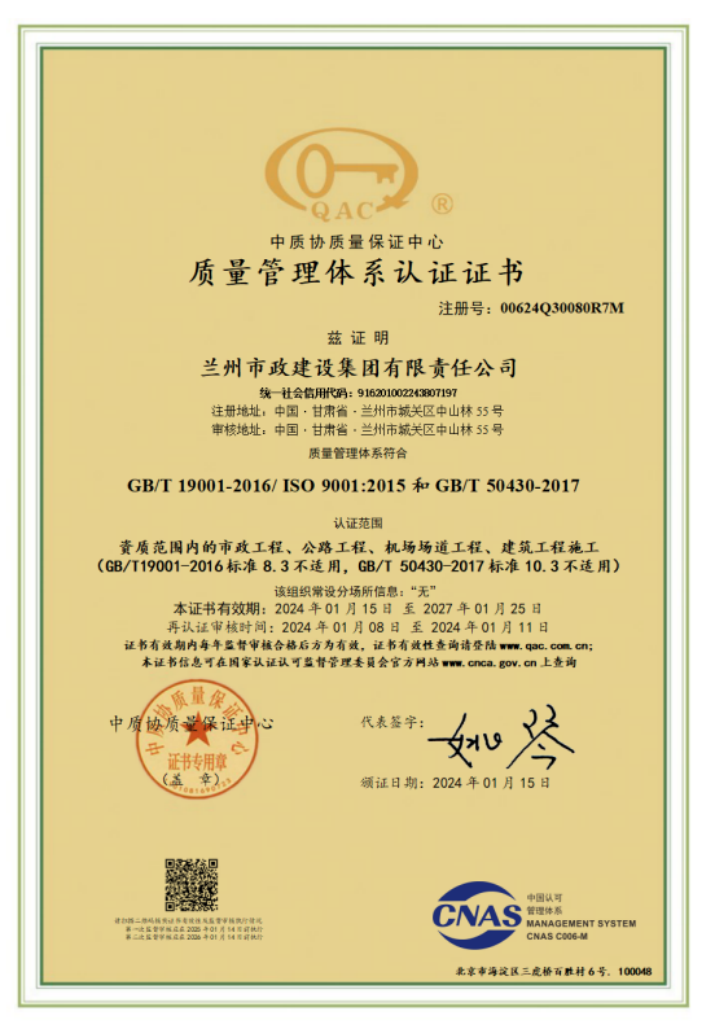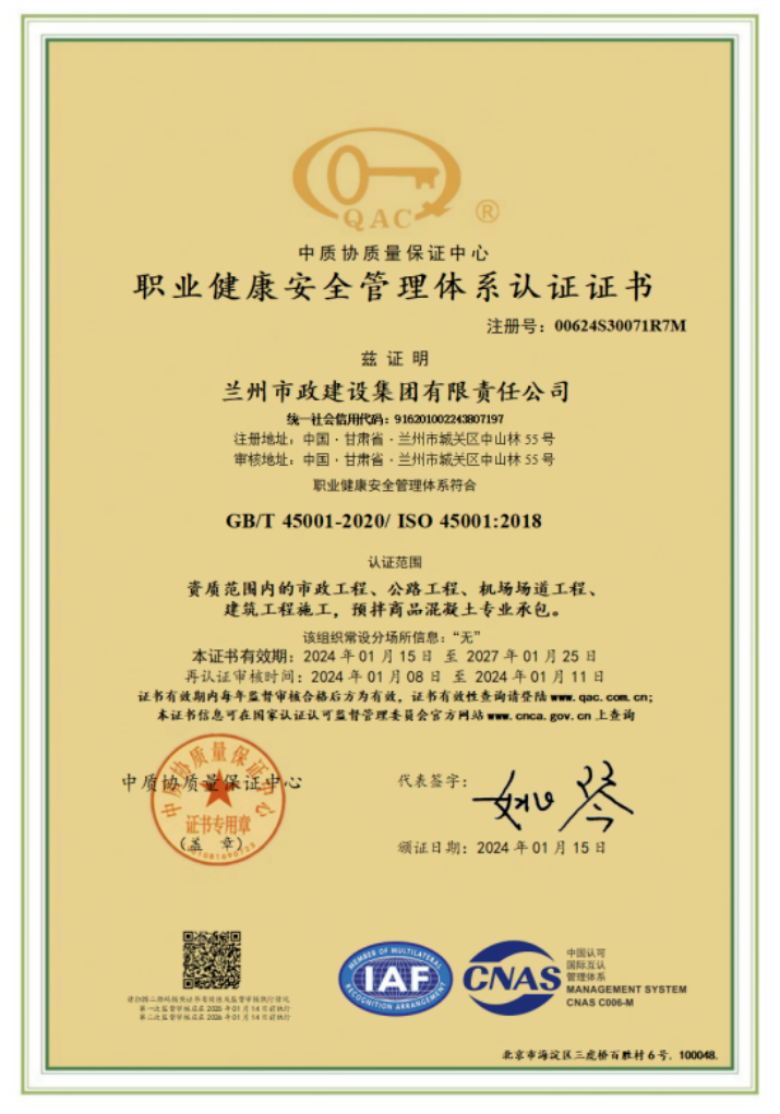 1月23日,甘肅文旅集團旗下子公司蘭州市政建設集團順利通過ISO9001質量管理體系、ISO14001環(huán)境管理體系、ISO45001職業(yè)健康安全管理體系再認證審核,蘭州市政建設集團已連續(xù)27年通過ISO綜合管理體系認證。