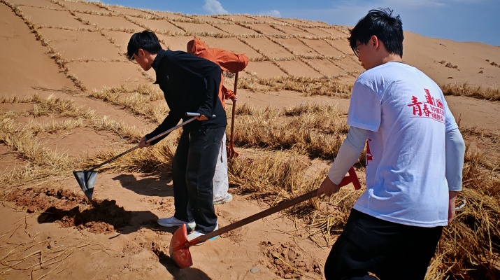 活動(dòng)期間,同學(xué)們還體驗(yàn)了沙畫(huà)藝術(shù)創(chuàng)作,觀看了八步沙治沙專(zhuān)題教育片,并積極參與草方格壓沙實(shí)踐,親手為荒漠治理貢獻(xiàn)力量。通過(guò)理論與實(shí)踐的結(jié)合,隊(duì)員們深刻領(lǐng)悟了“困難面前不低頭、敢把沙漠變綠洲”的八步沙精神。