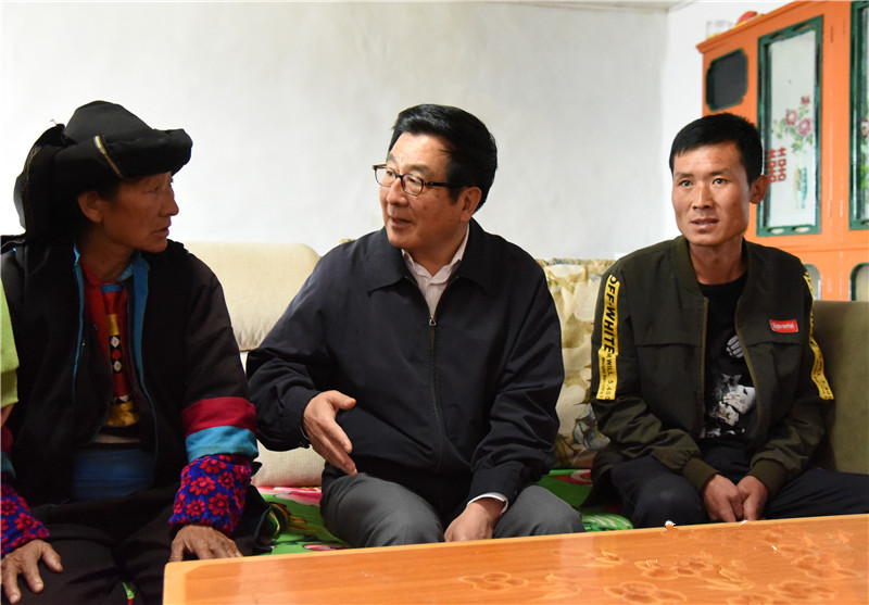 舟曲縣果耶鄉(xiāng)前山村是深度貧困村,這里山大溝深、地形陡峭、交通閉塞。沿著蜿蜒山路,中午時(shí)分,林鐸來(lái)到村民尹魯魯代、尹九馬周、尹今常家,察看住房保障、安全飲水等情況,同他們促膝交談,詳細(xì)詢問收入來(lái)源、務(wù)工就業(yè)、子女上學(xué)、醫(yī)療報(bào)銷等情況。林鐸還看望慰問了駐村干部。