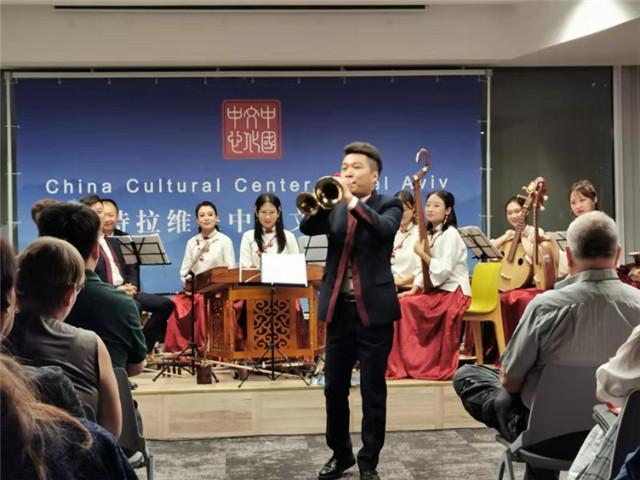 遙望明月共此時,歡度佳節(jié)同相知。中秋節(jié)歷史悠久,是中國的主要傳統(tǒng)節(jié)日之一。中秋佳節(jié)之際,甘肅藝術(shù)團在以色列舉辦以“天涯共此時”為主題的民樂演出活動,向當?shù)孛癖娝腿チ嗣烂畹囊魳肥⒀纾故玖酥袊鴤鹘y(tǒng)文化的精粹,表達了中國人民對親情、友情、鄉(xiāng)情的深刻理解與美好祝福。當?shù)刂髁髅襟w及新華社、中國國際廣播電臺對此次演出活動進行了采訪與報道。(文/圖 甘肅省文化和旅游廳 彭金澤)
