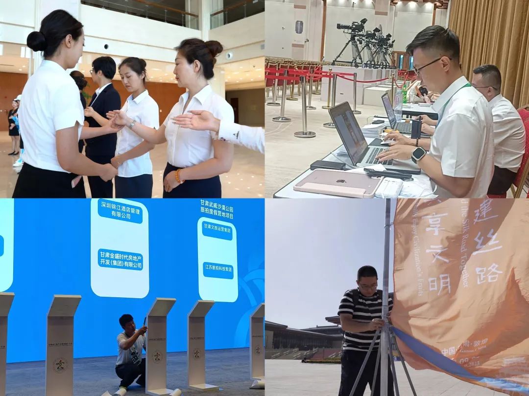在節(jié)會籌備過程中,集團公司旗下絲路文博公司全體成員在大會前20多天備戰(zhàn)一線,與敦煌文博會執(zhí)委會辦公室及各方保持密切溝通和協(xié)作,將精益求精的工匠精神貫穿工作始終,竭盡全力做好各項工作。在節(jié)會前夕,他們更是通宵達旦,累了就在會場打地鋪,醒了續(xù)杯濃茶繼續(xù)戰(zhàn)斗,不斷對現(xiàn)場布置、設(shè)備功能、應(yīng)急方案等細節(jié)方面進行優(yōu)化,確保了節(jié)會的順利舉辦。