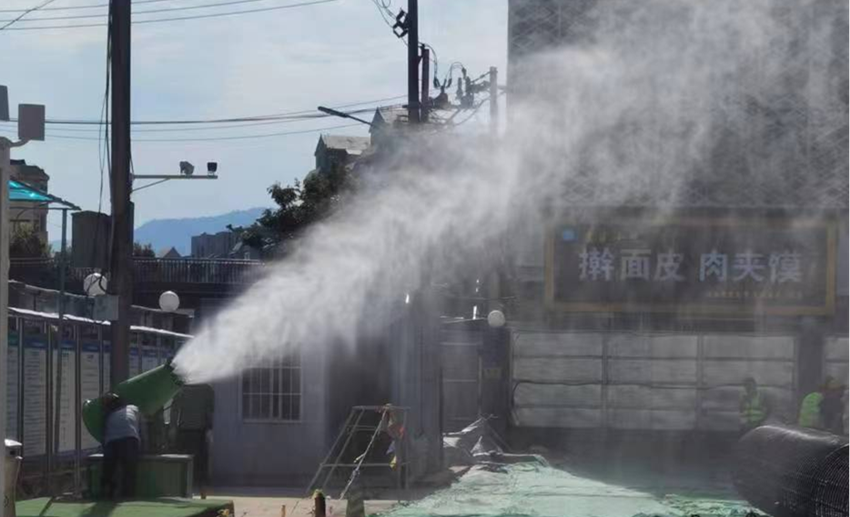 為確保大氣污染防治工作落到實處,增強項目參建人員大氣污染治理防范意識,保證項目建設順利進行,四公司主要負責人與蘭州市環(huán)保局、城市執(zhí)法局、質(zhì)監(jiān)站等單位溝通協(xié)調(diào),結(jié)合項目地處鬧市區(qū)實際,制定大氣污染防治措施,并組織項目部全體人員召開大氣污染整治專題會議,對大氣污染防治工作的相關(guān)要求進行部署和落實。一是全面落實公司各項決策部署和子(分)公司《關(guān)于進一步加強施工大氣污染管理工作的通知》要求,提高思想認識,轉(zhuǎn)變工作作風,落實工作職責,切實抓緊抓實抓好各項措施落實落細,以實際舉措防治大氣污染,確保空氣質(zhì)量持續(xù)改善。二是加強宣傳引導,發(fā)揮黨建工作引領(lǐng)作用,提高政治站位,緊盯目標任務,突出重點工作,堅持目標導向,劃分責任區(qū),責任到人,強化考核問效,為安全文明施工生產(chǎn)提供保障。三是狠抓揚塵治理。各參建員工要牢固樹立大局意識,責任意識、擔當意識,嚴格落實“六個百分百”要求,齊抓共管,加強施工現(xiàn)場、道路揚塵管控,督促各施工作業(yè)隊文明施工,嚴格落實各項防塵抑塵降塵措施,促進項目建設順利推進。四是加大揚塵污染治理物資設備的投入。項目部在施工周邊居民樓上安裝噴淋系統(tǒng)噴霧降塵,施工現(xiàn)場發(fā)泡機噴水抑制塵土飛揚,有效減少揚塵污染。施工場區(qū)道路、加工區(qū)地面進行硬化處理,裸露場地進行全覆蓋,鉆孔泥漿自然脫水固化后及時使用封閉式運輸車輛外運。車輛出入口安裝車輛自動沖洗裝置,專人負責,檢查車輛外部、底盤、輪胎處不得沾有污物和泥土,嚴禁車輛帶泥上路。五是加大巡查和預防力度。項目部安排專人加強對揚塵污染源的巡查和檢測,不定時進行場地清潔、灑水,及時處理揚塵污染問題。